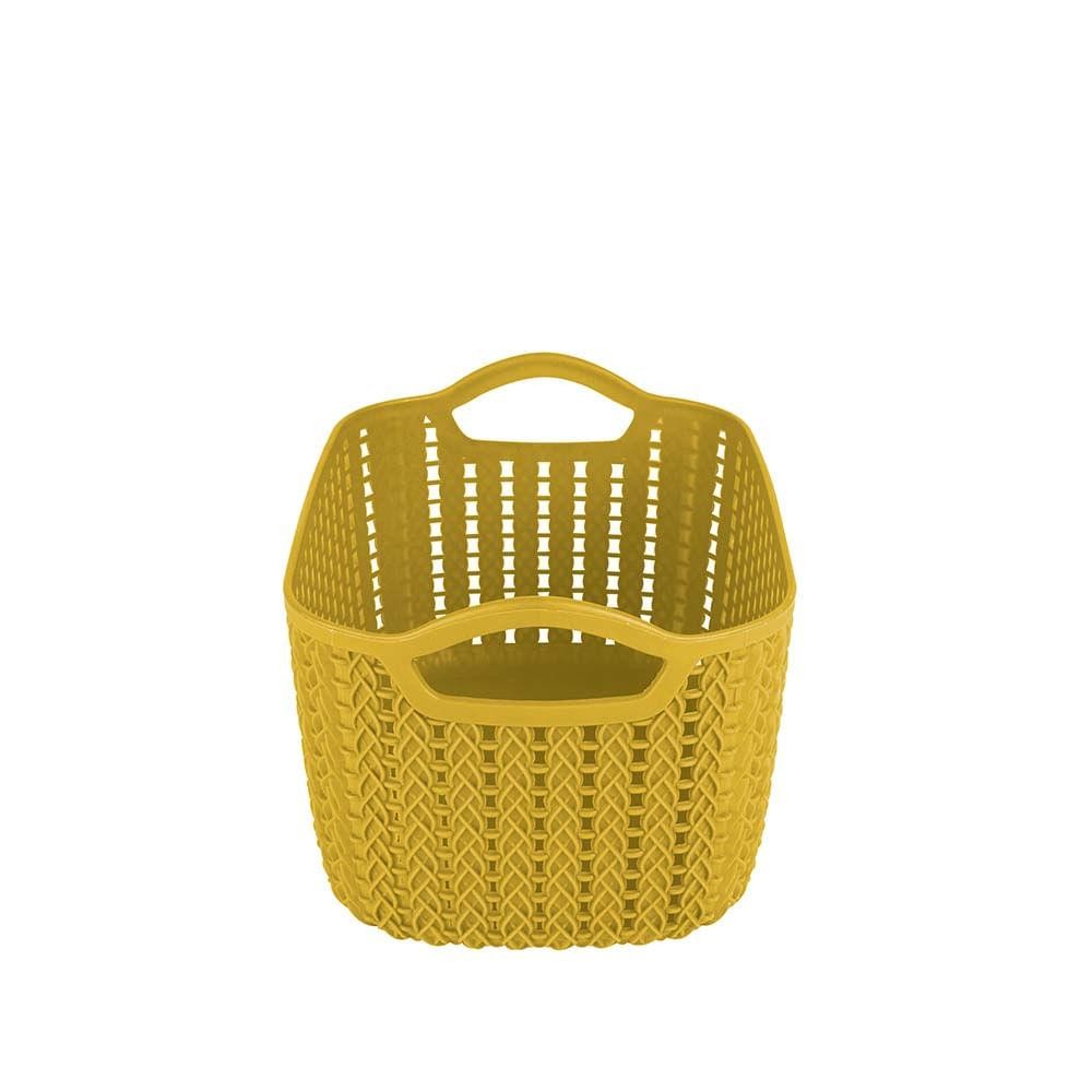 Cesto Trançado Retangular Alto Pequeno Mostarda
