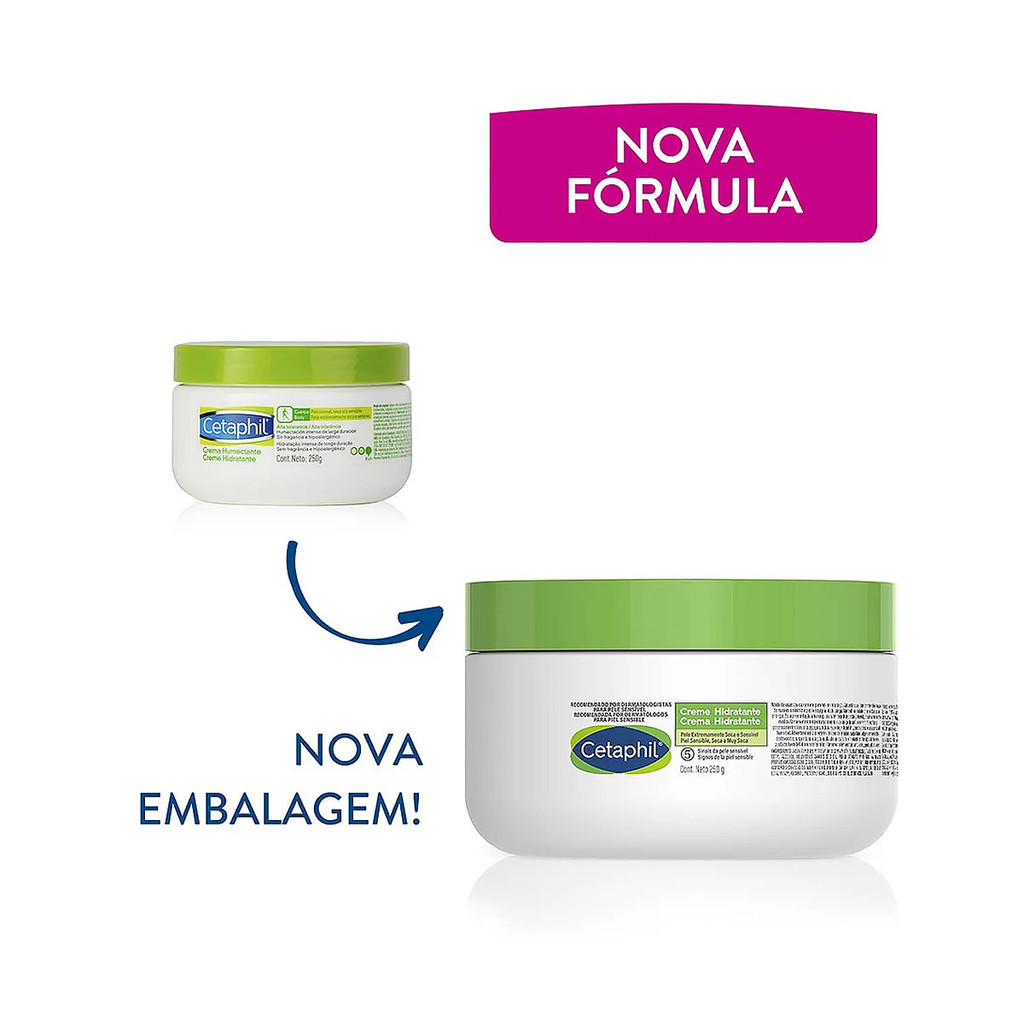 Creme Hidratante Cetaphil Corporal 250g Creme hidratante corporal para peles extremamente secas e sensíveis. Cetaphil proporciona alto poder de hidratação, deixando a pele macia e saudável. O Creme Hidratante Cetaphil traz fórmula que proporciona até 48 horas de hidratação da pele, graças à Tecnologia Moisture Lock: Componentes com alto poder hidratante, como Niacinamida, Pantenol e Glicerina. Ele não possui fragrância e é hipoalergênico, com ação restauradora completa da barreira cutânea em 7 dias. Entre suas principais características: Estimula as 15 ceramidas que a pele precisa. Retêm a umidade e previne a perda de água da pele com Ingredientes hidratantes. 100% dos usuários sentiram que o produto hidrata a pele nas áreas mais ressecadas*. Estudo realizado com 31 participantes durante 28 dias de aplicação. Nova embalagem. Você poderá receber o produto com a embalagem antiga enquanto durarem os estoques. Uso: Aplicar o creme Cetaphil após o banho e repetir a aplicação sempre que necessário. Este produto foi formulado de maneira a minimizar possível surgimento de alergia. Mantenha o produto longe do alcance das crianças. Não utilize sobre a pele lesionada. Em caso de reação, suspenda o uso. Em caso de ingestão acidental, procure atendimento médico. Em caso de contato com os olhos, enxágue imediatamente. Armazenar em temperatura ambiente e ao abrigo do sol. Uso externo.