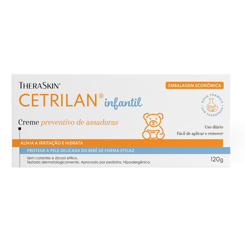 CETRILAN THERASKIN CREME CONTRA ASSADURA Previne as assaduras e protege a pele delicada do bebê. Produto de fácil aplicação e remoção. Formulação única e completa com ingredientes ativos que protegem