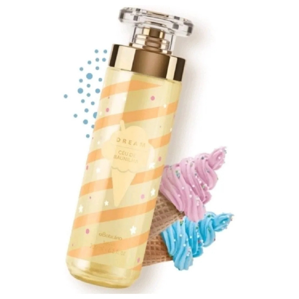 Dream Céu de Baunilha Body Splash Desodorante Colônia é um item versátil da perfumaria feminina. Possui um toque adocicado por conta da sua pirâmide olfativa que contém Baunilha, Damasco, Frutas Secas, Pimenta Rosa e Flor Solar. Esse Body Splash possui perfumação refrescante e leve, podendo ser usado em todas as ocasiões e reaplicado ao longo do dia. Imagine um lugar onde todos os sonhos doces podem se tornar realidade. Aqui todos são livres para sonhar. Esse mundo é o Céu de Baunilha. A volumetria de 200ml é ideal para ter a sua fragrância feminina por mais tempo ou presentear aquela pessoa especial. Se quiser ressaltar a perfumação, experimente combinar com a Loção Hidratante Desodorante Corporal Céu de Baunilha. Este é um produto vegano, ou seja, não possui nada de origem animal em sua fórmula. Nenhum produto do Grupo Boticário é testado em animais.