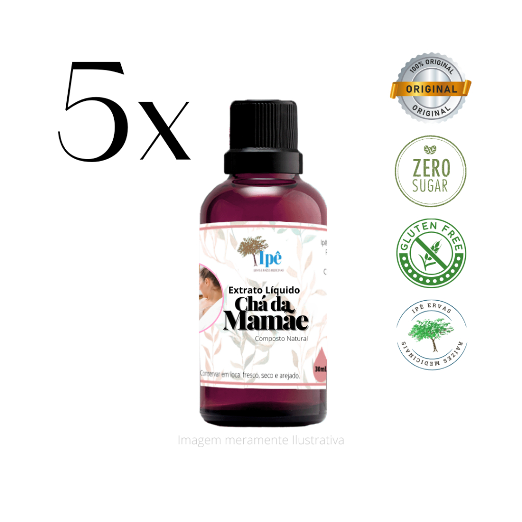 Extrato Líquido Chá da Mamãe – 30ml Ipê Ervas e Raízes Medicinais Composição: Extrato hidroalcoólico das seguintes plantas medicinais: Semente de Algodão (Gossypium herbaceum) Erva-Doce (Pimpinella anisum) Funcho (Foeniculum vulgare) Alfafa (Medicago sativa) Camomila (Matricaria chamomilla) Indicação tradicional: Fórmula tradicionalmente usada para auxiliar o bem-estar da mulher, especialmente durante o período da amamentação. Pode contribuir para: Alívio de gases e cólicas no bebê (através do leite materno) Estímulo à produção de leite materno Modo de uso sugerido: Tomar 15 a 20 gotas diluídas em meio copo de água, 3 vezes ao dia, ou conforme orientação de um profissional habilitado. ⚠️ Precauções: Uso adulto. Não usar durante a gravidez sem orientação médica. Manter fora do alcance de crianças. Agite antes de usar.