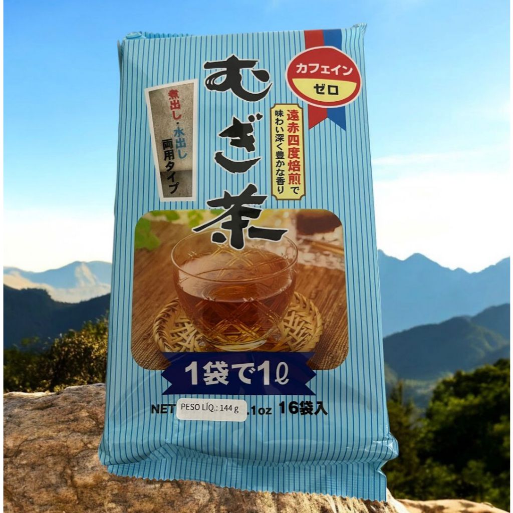 Mugui Cha é um chá japonês sem cafeína feito de cevada torrada, popular no verão e consumido quente no inverno. Conhecido como chá de cevada, ele é refrescante, sendo indicado para todas as idades. Sua preparação é simples: basta colocar um sachê em água fria e refrigerar, ou em água quente por alguns minutos. Pacote de 144g contem 16 saches de 9g cada Origem : Japão Tem outro pacote de 364g com 52 sachês de 7g cada. Origem: Japão