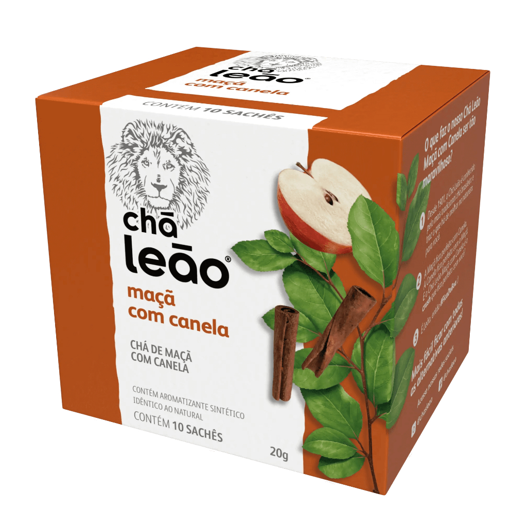A linha de Frutas e Flores da Leão possui a combinação de aromas e sabores, pensados especialmente para quem gosta de ter uma experiência diferente na hora de beber seu chá! #FicadeBoa com Chás Leão ESPECIFICAÇÕES: - Sabores: Maçã com Canela - Aplicação: Chá para Infusão. - Embalagem: Caixa com 10 (Dez) sachês embalados individualmente. - Porção: 2g (1 sachês) - Fabricante: Leão Alimentos e Bebidas LTDA. - Origem: PR/Brasil. TABELA NUTRICIONAL: - Ingredientes: Maçã (pyrus malus, L.), casca moída de canela (cinnamomun zeylanicum) e aromas indênticos aos naturais de maçã e canela. - Valor Energético: 5 kcal por porção de 2 gramas - Carboidratos: 1,1g por porção de 2 gramas ALÉRGICO: - NÃO CONTÉM: Glúten MODO DE PREPARO: - Despeje água quente (a 90C) em uma xícara de 240ml. - Coloque o sachê e deixe em infusão por cinco (5) minutos. - Se preferir, adoce. INFORMAÇÕES IMPORTANTES: - Conservar ao abrigo do Sol e Calor em local limpo, seco, arejado e sem odor. - Consumir imediatamente após preparo. - Produto sujeito a variação de suas características, devido à presença de ingredientes naturais. - Utilize água filtrada. - As imagens dos produtos e/ou seus componentes são meramente ilustrativos, exceto quando indicado o contrário no próprio anúncio.