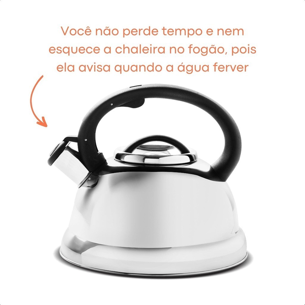 Chaleira 2,7L com Apito em Aço Inox Alça em Nylon para Fogão a Gás Vitrocerâmico, Elétrico Por Indução - Brinox 4875/100