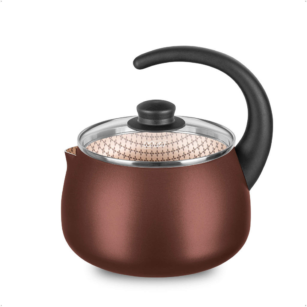 Chaleira Antiaderente Linha Flora com Tampa de Vidro 2L em Alumínio Marrom Chocolate MTA - 901
