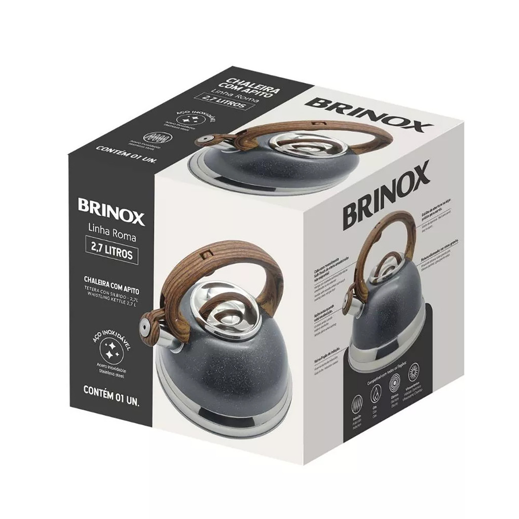 Chaleira Apito Roma 2,7L Granito Aço Inox Fundo Indução Cabo Antitérmico Soft Touch Brinox