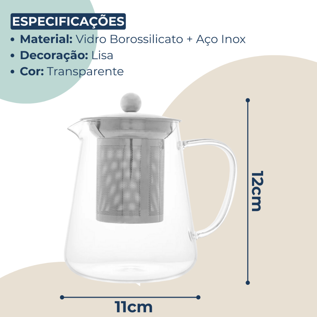 Chaleira Bule De Vidro Com Infusor De Inox Direto Ao Fogo Resistente Ao Calor 750ml