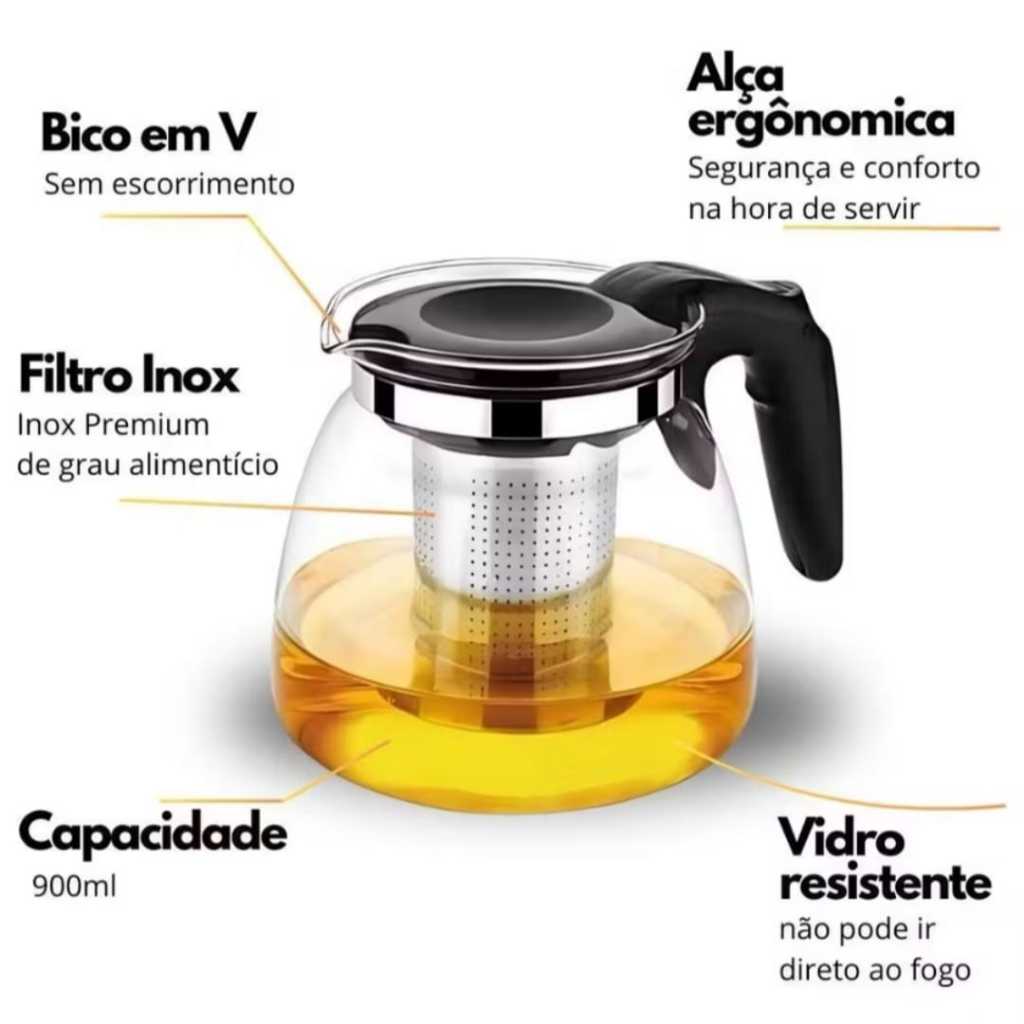 Chaleira Com Infusor De Vidro 900ml Para Chá Bule inox