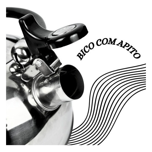 DESCRIÇÃO: - Chaleira Aço Inox Cromada Com Apito 2 Litros Com um design altamente inovador, a chaleira de apito em inox é uma das mais elegantes do mercado. Além disso, é feita de material em aço inox que confere extrema durabilidade ao item para o uso diário. Para utilizá-la é bastante simples: Basta inserir o líquido no interior da chaleira, fechar e, assim que o líquido começar a ferver, ela emitirá um som de apito. CARACTERÍSTICAS DO PRODUTO: - Capacidade: 2 Litros - Fabricada em aço inox, proporciona longevidade ao produto. - Chaleira de Assobio de Aço Inoxidável - Punho e botão resistentes ao calor - Base durável de 4mm de espessura - Bico largo para facilitar o derramamento - Tampa removível para facilitar o enchimento e a limpeza Garantia do vendedor: 30 dias