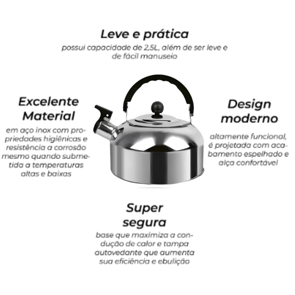Chaleira De Aço Inox Inox Com Apito Capacidade 2 Litros Para Fogão A Gás e De Indução