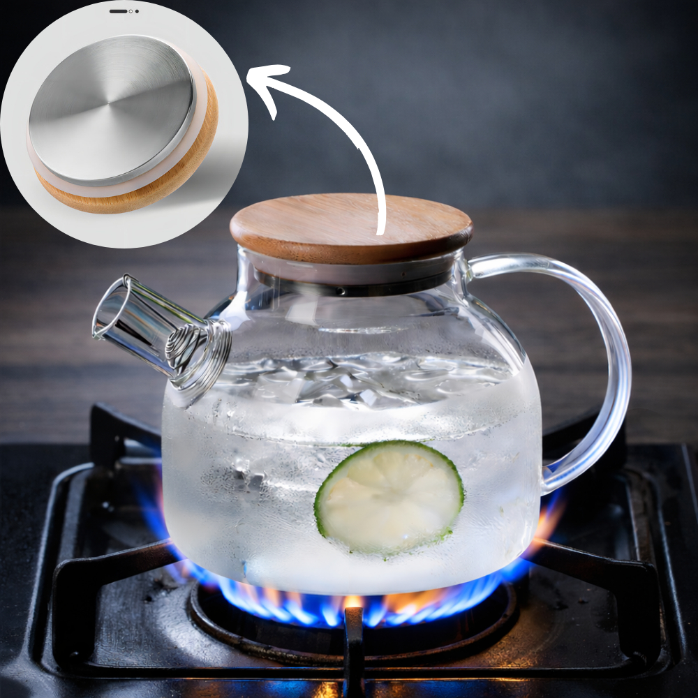 Chaleira de Vidro Bule Borossilicato 1L com Tampa de Bambu e Coador Infusor de Inox Resistente ao Fogo Bamboo