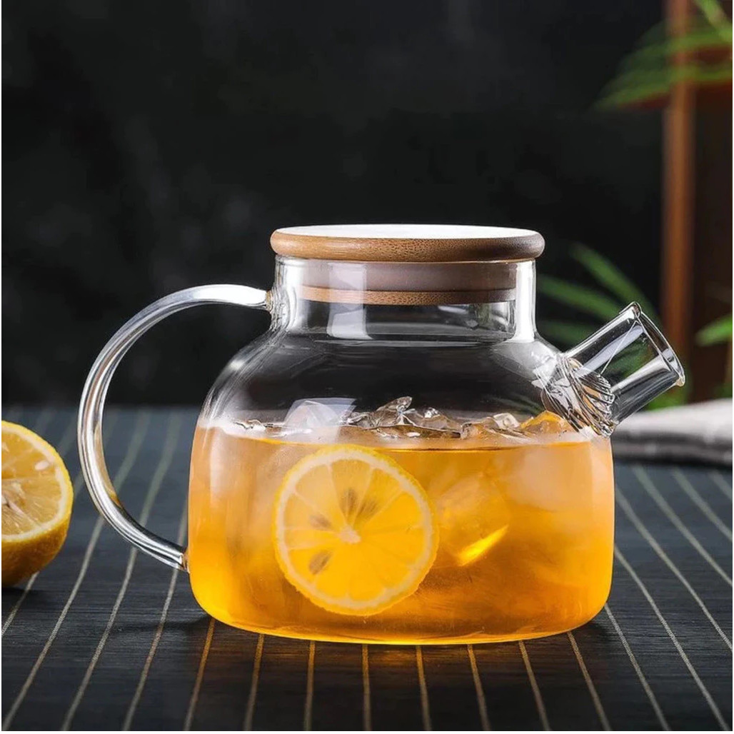 Chaleira de Vidro Tampa de Bambu Jarra Bule infusor Resistente a Calor Borossilicato 1L