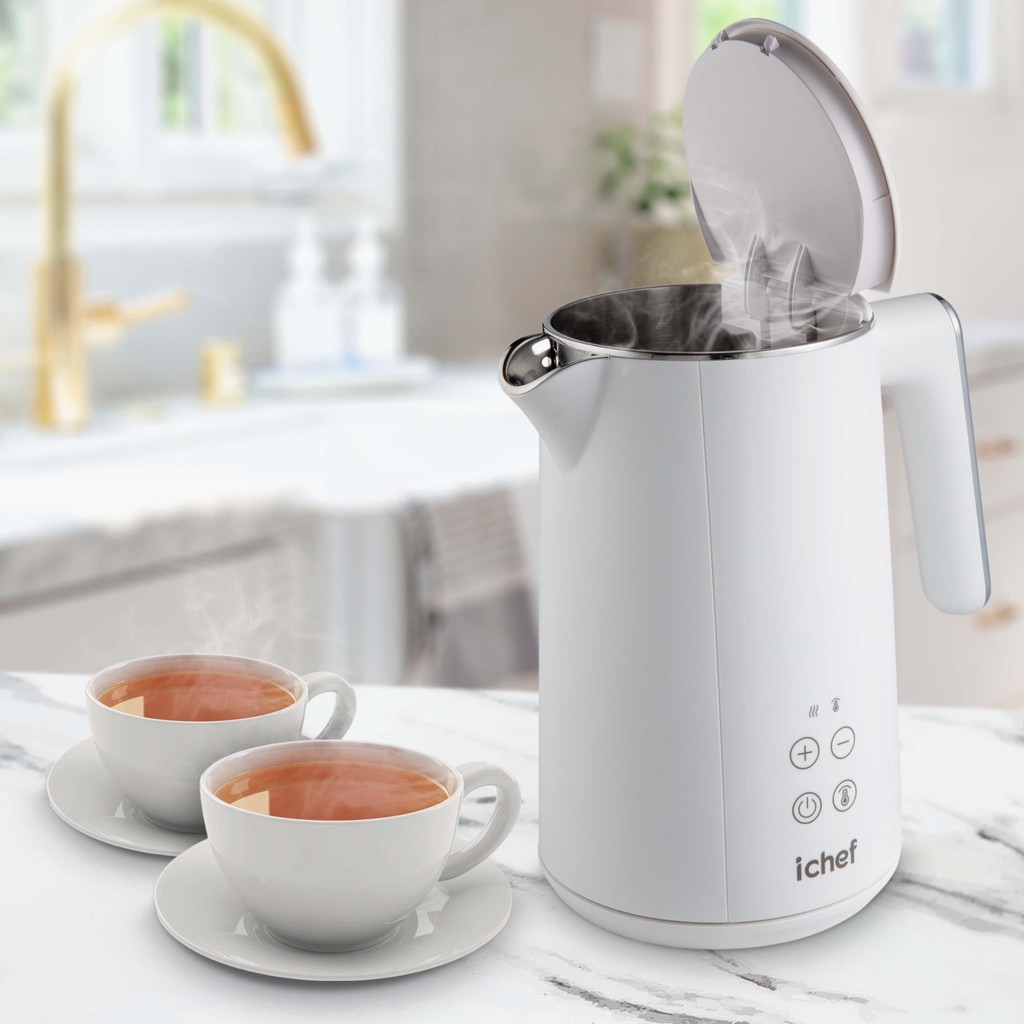 Transforme sua rotina com a Chaleira Elétrica ichef Breakfast, uma combinação perfeita de design moderno, eficiência e funcionalidade. Seja para preparar um chá relaxante, um café especial ou acelerar suas receitas, ela é o equipamento ideal para tornar tudo mais prático e rápido. Design inteligente e seguro A estrutura de parede dupla proporciona mais segurança ao toque, enquanto a base giratória de 360° facilita o manuseio e permite maior conveniência no uso. Além disso, o elemento de aquecimento oculto e o desligamento automático com proteção contra fervura e secagem garantem máxima segurança em cada utilização. Com um display digital e controle no corpo e a função "manter aquecido", a chaleira permite ajustar a temperatura ideal para cada preparo, mantendo a água quente por mais tempo. O sistema de abertura automática da tampa e a marca interna de nível de água tornam o uso ainda mais prático e intuitivo. Eficiência com capacidade ideal Com capacidade total de 1,5 litros e uma potência de até 1200W, a chaleira aquece a água de forma rápida e eficiente, economizando tempo e energia. Perfeita para o preparo de bebidas quentes ou para agilizar as tarefas na cozinha. Qualidade e versatilidade em cada detalhe Seu filtro de aço integrado é perfeito para evitar grandes resíduos da sua bebida, tornando a experiência ainda melhor. Seja para uso diário ou em momentos especiais, a Chaleira Elétrica ichef Breakfast combina tecnologia e estilo para elevar a experiência na sua cozinha. Experimente a ichef Breakfast e transforme o jeito como você prepara suas bebidas! A Chaleira Elétrica ichef Breakfast é uma exclusividade POLISHOP