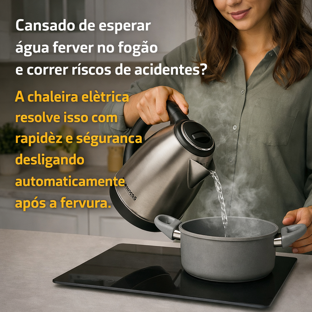 Chaleira Elétrica Inox 2 Litros 220V ou 127V Fervedor Água Rápido Jarra Aquecedor Automático Ferve Água Café Chá