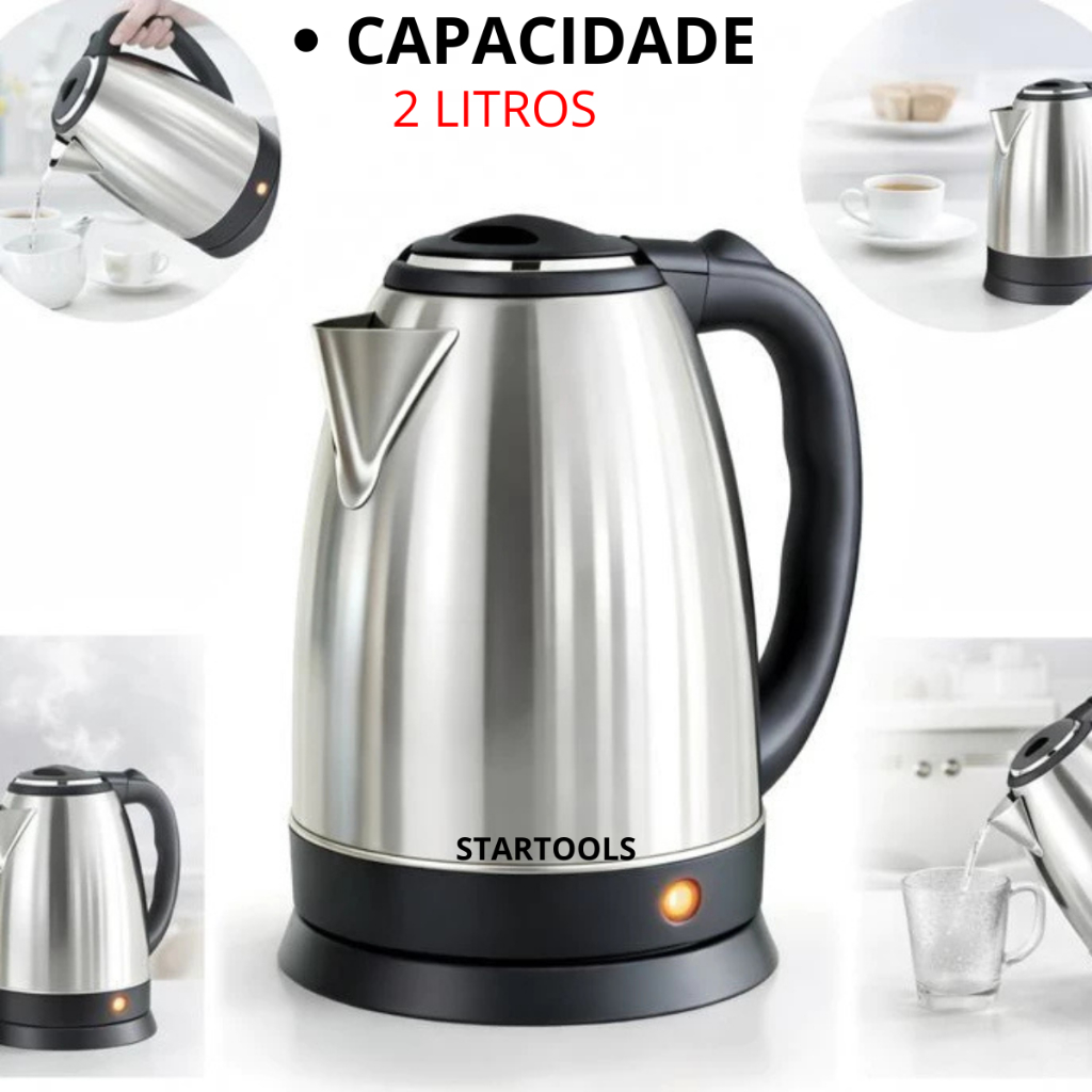 Chaleira Elétrica jara BULE Inox 2L Startools 127V 220V Potência 1000W Ferver Água Econômica