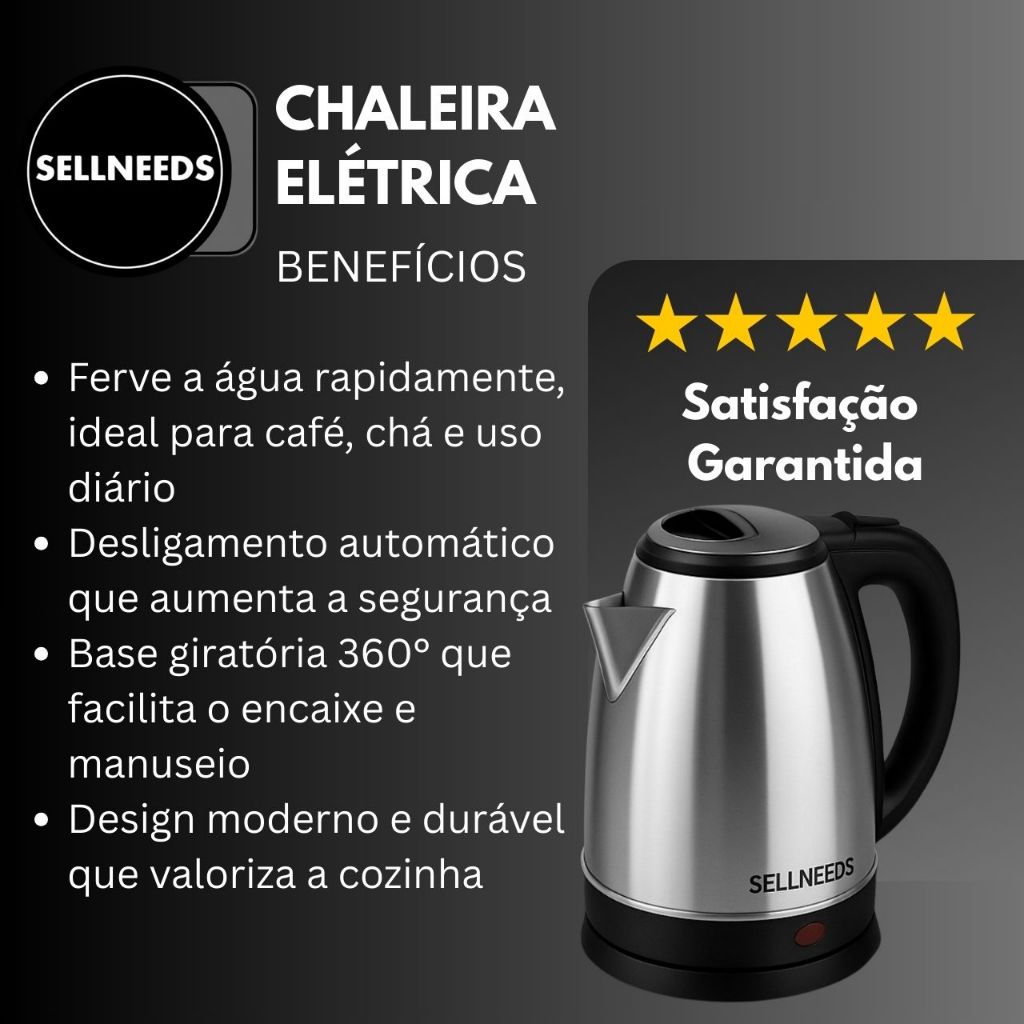 ☕⚡ Chaleira Elétrica – Praticidade, Rapidez e Conforto no Seu Dia a Dia! Tenha água quente sempre à disposição de forma rápida, segura e eficiente! Com a Chaleira Elétrica, você prepara suas bebidas e receitas favoritas em poucos minutos, trazendo muito mais praticidade para a sua rotina. Ideal para quem valoriza agilidade no dia a dia, é perfeita para ferver água para café, chá, chimarrão, sopas instantâneas, macarrão rápido e muito mais. Seu design moderno e compacto combina facilmente com qualquer estilo de cozinha, ocupando pouco espaço e oferecendo excelente desempenho. Uma ótima opção para casa, escritório ou áreas de lazer, tornando cada preparo mais simples, rápido e confortável. ⚡ Vantagens que Fazem a Diferença: 🔥 Água quente em poucos minutos ☕ Ideal para café, chá, chimarrão, sopas e receitas rápidas 🏡 Design moderno e compacto 💡 Prática e econômica para o uso diário 👌 Fácil de usar e limpar ⚡ Especificações do Produto: • Voltagem: 110V • Capacidade: entre 1,8 litros e 2 litros (variação conforme o lote) • Uso: Doméstico • Conteúdo da embalagem: 1 Chaleira Elétrica ⚠️ Atenção Importante 🚫 Produto NÃO é bivolt 🔌 Não utilizar em tomadas 220V, risco de dano ao produto ℹ️ Aviso ao Cliente Devido à rotatividade de fornecedores, a marca do produto pode variar conforme o lote, porém as especificações, funcionalidade e qualidade permanecem as mesmas, garantindo o desempenho e a eficiência descritos no anúncio.
