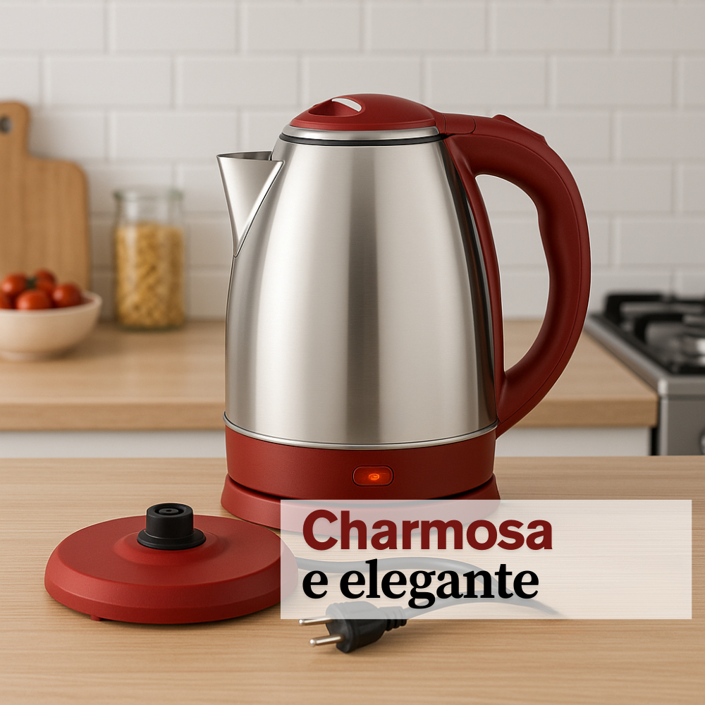⚠️ ATENÇÃO: A marca enviada pode variar de acordo com a disponibilidade em estoque. Garantimos que todas possuem a mesma qualidade, material e medidas, conforme descrição do anúncio. A Chaleira Elétrica Inox 1,8 Litros é a combinação perfeita de praticidade, segurança e design moderno para sua cozinha ou ambiente de café. Com capacidade para 1,8L, ela aquece água rapidamente, ideal para preparar cafés, chás, chimarrão, sopas instantâneas e muito mais. Fabricada em aço inoxidável resistente, a chaleira conta com base giratória 360º, facilitando o manuseio, e um sistema de desligamento automático, que garante mais segurança ao evitar superaquecimentos. Além disso, seu visual elegante combina perfeitamente com qualquer ambiente, seja doméstico ou profissional. ✅ Principais características: Capacidade: 1,8 litros – ideal para uso individual ou familiar Material: Aço inoxidável – durável e de fácil limpeza Voltagem: 110V ou 220V (escolher no momento da compra) Potência: Alta potência para ferver água rapidamente Desligamento automático: Mais segurança no uso diário Base giratória 360°: Praticidade no encaixe e remoção Luz indicadora de funcionamento Design moderno: Perfeita para cozinhas e estações de café ☕ Ideal para: Preparo rápido de café, chá e chimarrão Uso doméstico, escritório ou copa comercial Quem busca agilidade e segurança na rotina Substituir o fogão com economia e eficiência