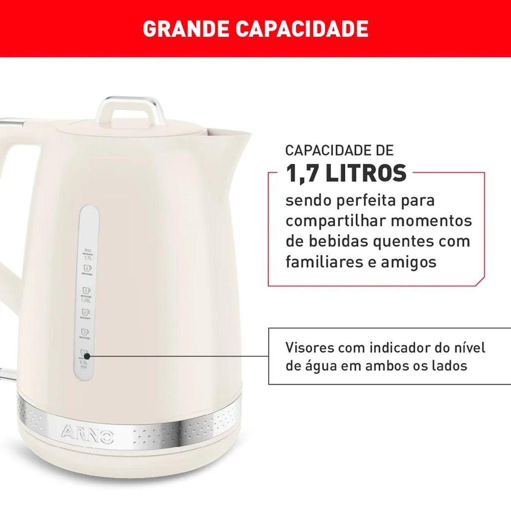 Chaleira Elétrica Soleil 1,7L Base Giratória Desligamento Automatico - Arno