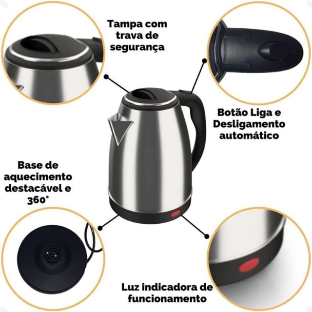 | Chaleira Elétrica Inox 2 Litros Desligamento Automático Aquecimento... | R$ 44,90 | 63% | 4.9/5 | 5.7 mil |