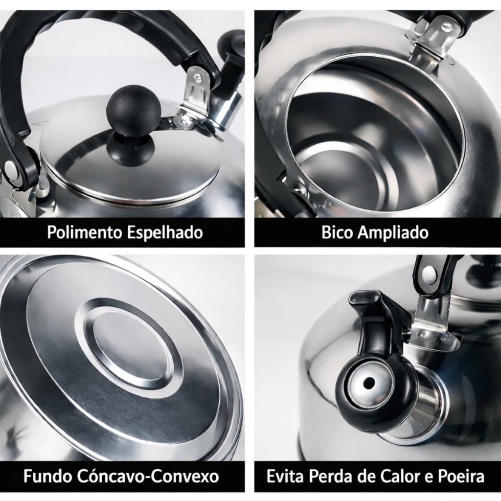 | Chaleira Inox 2L com Tampa Alça Térmica e Apito para Café Cha Bebidas este produto | R$ 31,90 | — | 5.0/5 | — |