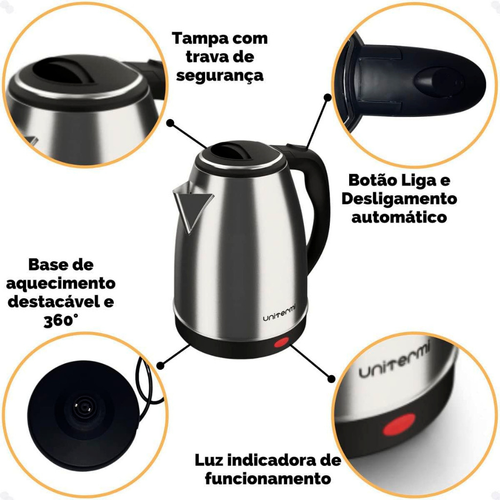 Chaleira Termica 1.8 2.0 Litros Com Tampa Desliga Automatico 110V 200V Inox