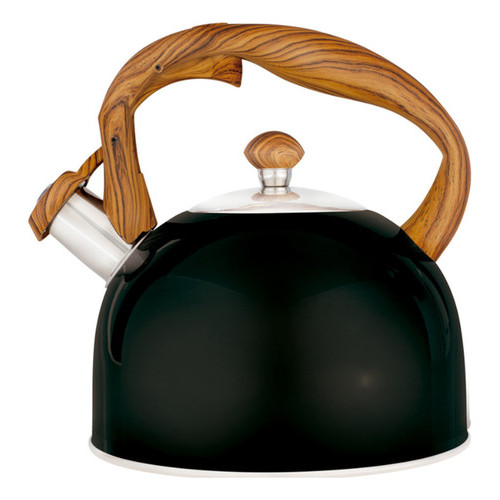 Chaleira Wood Mor 2,5 Litros Cabo Amadeirado Preta ou Bege Aço Inox Premium Gourmet Cozinha - Mor