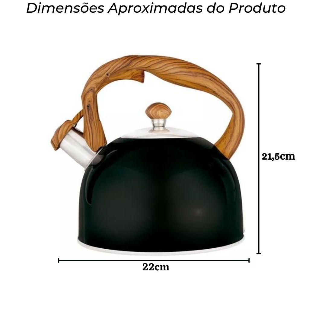 Chaleira Wood Preta Aço Inox e Madeira 2,5 Litros 07715- Mor