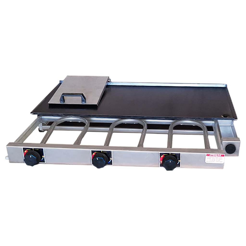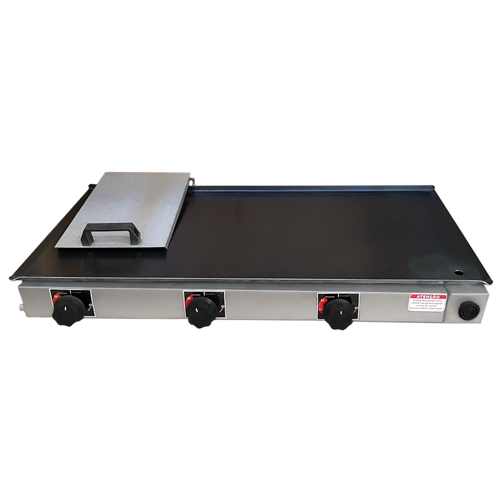 Chapa Chapeira 40x80 À Gás Para Lanche Hambúrguer Cachorro Quente + Prensa - Italima - Indicada para uso doméstico e pequeno comércio, a Chapa Sanduicheira 40x80 com Prensa é ideal para lanches e porções. Ela tem sua estrutura confeccionada em chapa de aço galvanizado, possui a chapa superior para frituras em aço carbono de alta resistência. - Os queimadores são bem distribuídos, sendo o sistema de acendimento manual com gaveta, gerando maior segurança para o usuário. Especificações: - Alimentação: GLP C/ Válvula Baixa Pressão ( não acompanha o produto ). - Registro: Botão ajustador de intensidade das chamas e da temperatura. - Botões : Possui trava de segurança. - Queimadores: 3 queimadores distribuídos de forma a ter um aquecimento uniforme em toda a chapa, podendo ser utilizado apenas 1 lado da chapeira se necessário. - Prensa: com cabo de baquelite de fácil manuseio garantindo uma perfeita finalização dos lanches. Produto de uso prático, rápido e econômico. - Base: Em borracha, para melhor segurança. - Capacidade: Até 06 hambúrgueres do tamanho médio. - Chapa superior : Com área de 400x800mm e espessura de 2,6mm com gaveta aparadora de resíduos. - Válvula: 1kg e 2kg - Gás: Utilizar gás de cozinha normal (Não é antiaderente) - Qualidade: Fina quente (Mais resistente a temperatura e não entorta) Dimensões: - Largura: 80cm - Profundidade: 40cm Atenção: A chapa deverá sempre estar untada com gordura vegetal ou óleo de cozinha para a sua melhor conservação. -Chapa para uso residencial
