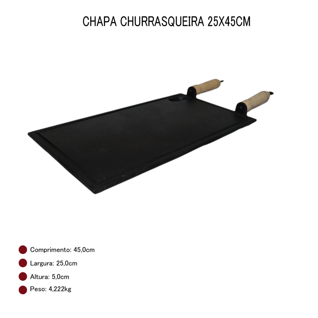 | Chapa Churrasqueira 25x45 De Ferro Fundido este produto | R$ 127,99 | — | 4.9/5 | 5 |
