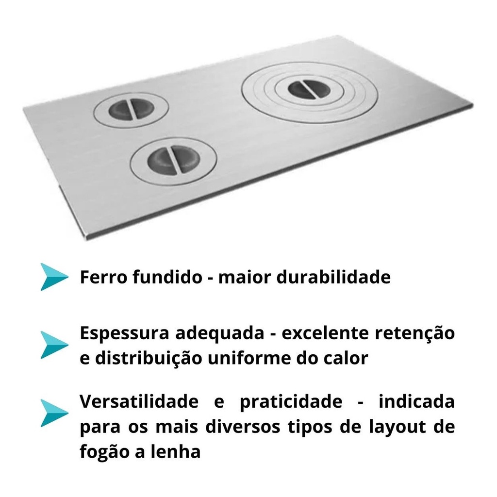 | Chapa De Fogão A Lenha 3 Furos Ferro Fundido Polida 40x60 Cm este produto | R$ 427,70 | — | 4.9/5 | — |