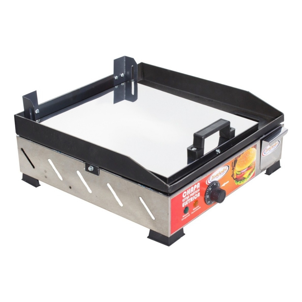 A Chapa 40x40 é confeccionada em chapa aço inox 430 escovado, possui sua chapa superior para frituras em aço carbono, indicada para o uso doméstico ou profissional pouco intenso. Com resistência de alta durabilidade, bem distribuída para aquecimento uniforme da chapa. Contém gaveta aparadora de resíduos, que facilita na hora da higienização. Com ajustador de temperatura que possui 0º a 300º, proporcionando o melhor aquecimento de acordo com o alimento a ser utilizado. A Chapa 40x40 é ideal para sua residência, de uso prático, rápido e econômico. SOBRE ESTE PRODUTO: Corpo: Aço inox Chapa: Em aço carbono 3,1 mm Led indicador ligado Led indicador aquecendo (Desliga quando atinge a temperatura) Gaveta coletora de resíduos com puxador Pés: Antiaderente Tensão: 220v Potência: 2500W Frequência: 60 Hz Amperagem: 30A Termostato: 0º a 300º graus Não é Antiaderente SOBRE A GARANTIA: 3 Meses Legais por Lei + 3 Meses do Fabricante, totalizando 6 Meses de Garantia contra defeitos de fabricação. PRODUTO COM PROCEDÊNCIA! Evite falsificações de produtos ou vendedores não qualificados, nossa empresa atua no segmento de produtos industriais à mais de 6 anos, trazendo total confiança e credibilidade a nossos clientes. Todos os produtos comercializados por nós, dispõe de NOTA FISCAL, aumentando a sua segurança e tranquilidade. SOBRE NOSSA EMPRESA: A GASTROSHOP EQUIPAMENTOS atua desde 2015 no segmento de produtos industriais voltados a gastronomia, trabalhando com os melhores produtos e fornecedores no mercado nacional, priorizando ótimos produtos e excelente pós vendas.