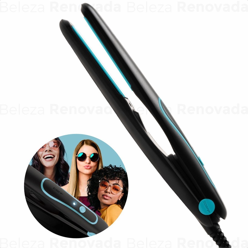 Chapa Style Preta TaiffDescriçãoPraticidade para seu estilo. A chapa Style oferece facilidade para a sua rotina de beleza. Disponível nas cores Black e Azul Tiffany. Com temperatura de 210°C, tecnologia cerâmica e aquecimento instantâneo, ela alisa, modela e faz cachos. O aquecimento PTC que impede a oscilação de temperatura e o perfil com amortecimento em silicone que se adapta a qualquer volume de cabelo garantem um alisamento perfeito até nas mechas mais finas. Possui ainda botão de liga/desliga com LED indicador, cabo de 1,80 metro, perfeito para espaços menores, bivolt automática e é leve e ergonômica. AtributosMarca: Taiff Modelo: Style Chapinha Cabelo Titanium Profissio Pontos Fortes da Chapa Style Preta BivA Chapa Style Preta Biv da Taiff é a aliada perfeita para quem busca praticidade, eficiência e resultados profissionais no cuidado com os cabelos. Confira seus principais atributos: 1. Tecnologia AvançadaA tecnologia cerâmica e o aquecimento instantâneo garantem um desempenho excepcional, proporcionando resultados de salão no conforto do seu lar. 2. Versatilidade de EstilosCom a temperatura de 210°C, a Chapa Style não apenas alisa, mas também modela e cria cachos deslumbrantes, permitindo que você explore diferentes looks com facilidade. 3. Segurança e ConfortoO aquecimento PTC controla a temperatura de forma precisa, evitando danos aos fios, enquanto o perfil com amortecimento em silicone proporciona um alisamento suave e uniforme, adaptando-se a qualquer tipo de cabelo. 4. Praticidade e FuncionalidadeO design ergonômico, o cabo de 1,80 metro e a bivolt automática tornam a Chapa Style ideal para uso em espaços pequenos, garantindo conveniência e eficiência no seu dia a dia. a sua Chapa Style Preta Biv e transforme seu visual com praticidade e estilo!
