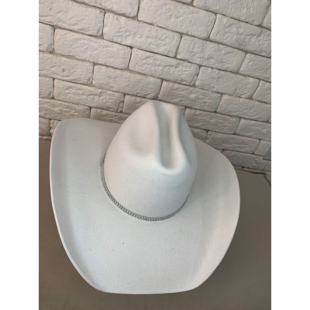 Chapeu Branco Country Cowgirl Americano Com Bandinha Stress Luxo Brilho Texas Premium