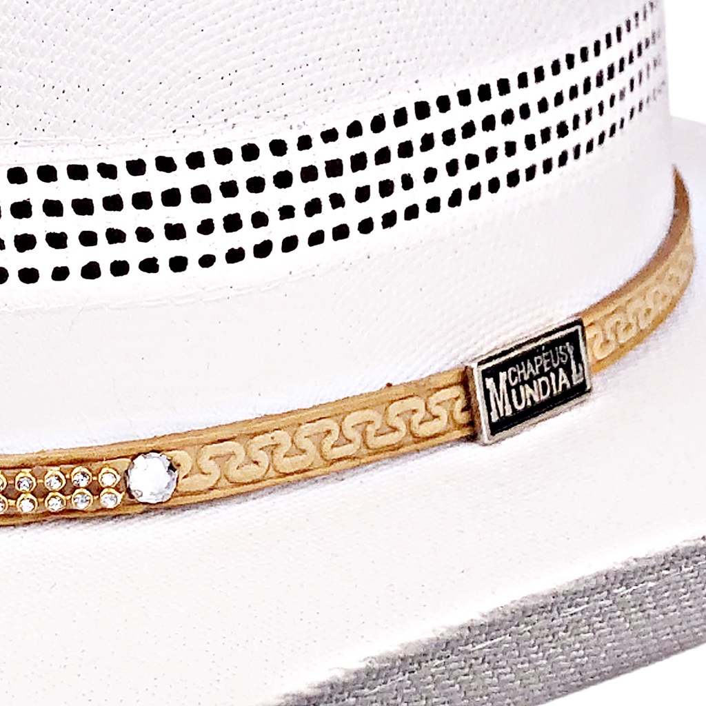 Chapéu Country Americano Branco ventilado com Strass unissex