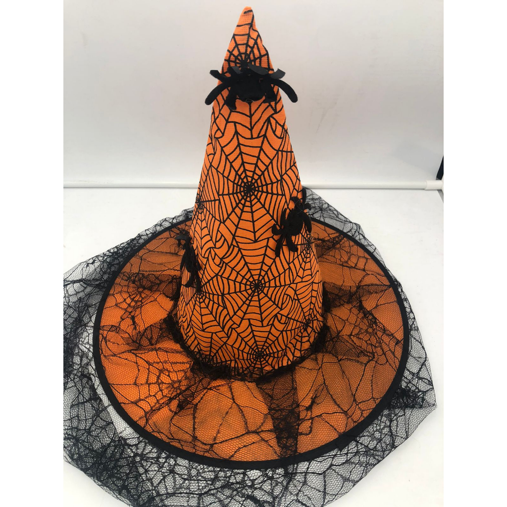 Chapéu de bruxa com aranha e teia Lindo chapéu pra fantasia de Halloween Material: Poliéster e Algodão Contém: 1 Unidade