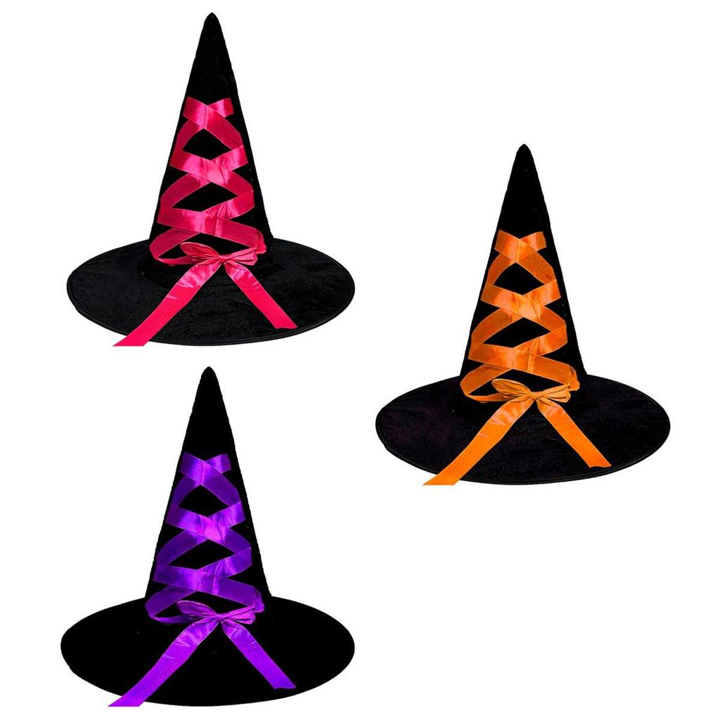 Chapéu de Bruxa Grande Adulto e Infantil Com Fita e Laço