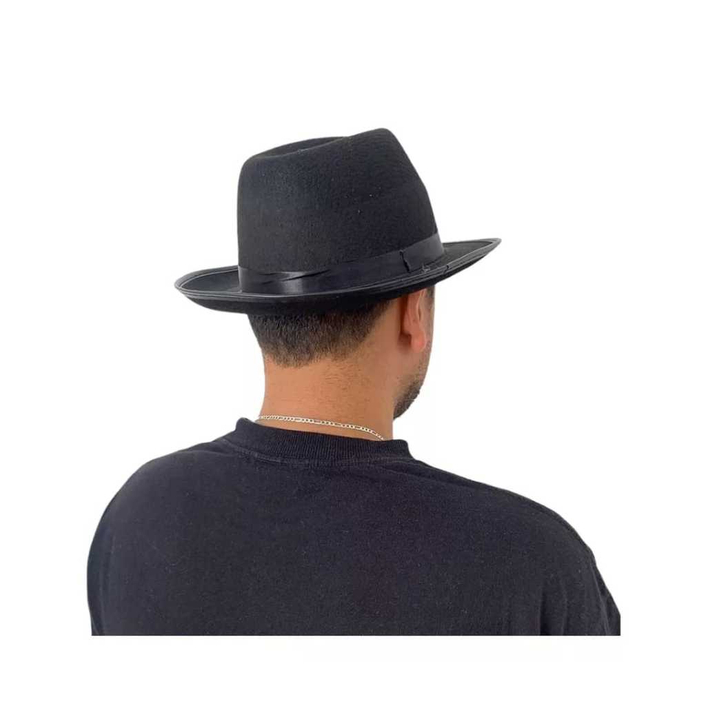 Chapéu De Feltro Gangster Cosplay Este chapéu, feito de feltro de alta qualidade, é a escolha perfeita para festas temáticas, eventos de cosplay ou até mesmo para dar um toque especial ao seu visual do dia a dia. Seu design clássico e elegante evoca a era dos gângsteres, trazendo um ar de sofisticação e mistério. Medidas aproximadas: 30cm de largura 13cm de altura 56cm de circunferência Cor: Preto Composição: Feltro Embalagem com 1 unidade