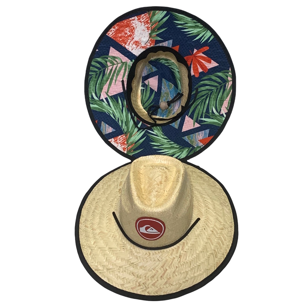 Chapéu de praia Palha natural Com forro estampado na aba Tamanho único adulto 58 cm Altura da copa 11 Aba de aproximadamente 12cm As etiquetas com logo podem variar Cordão com regulador para melhor ajuste Chapéu de palha com um acabamento e costura de qualidade palha natural bem traçada, tem ótima cobertura devido a sua aba grande protegendo do sol de ombro a ombro, as suas bordas vem com uma barra reforçada e costura e sua logomarca é em couro Cuidados: -Guarde sem amassá-lo, com a aba para cima