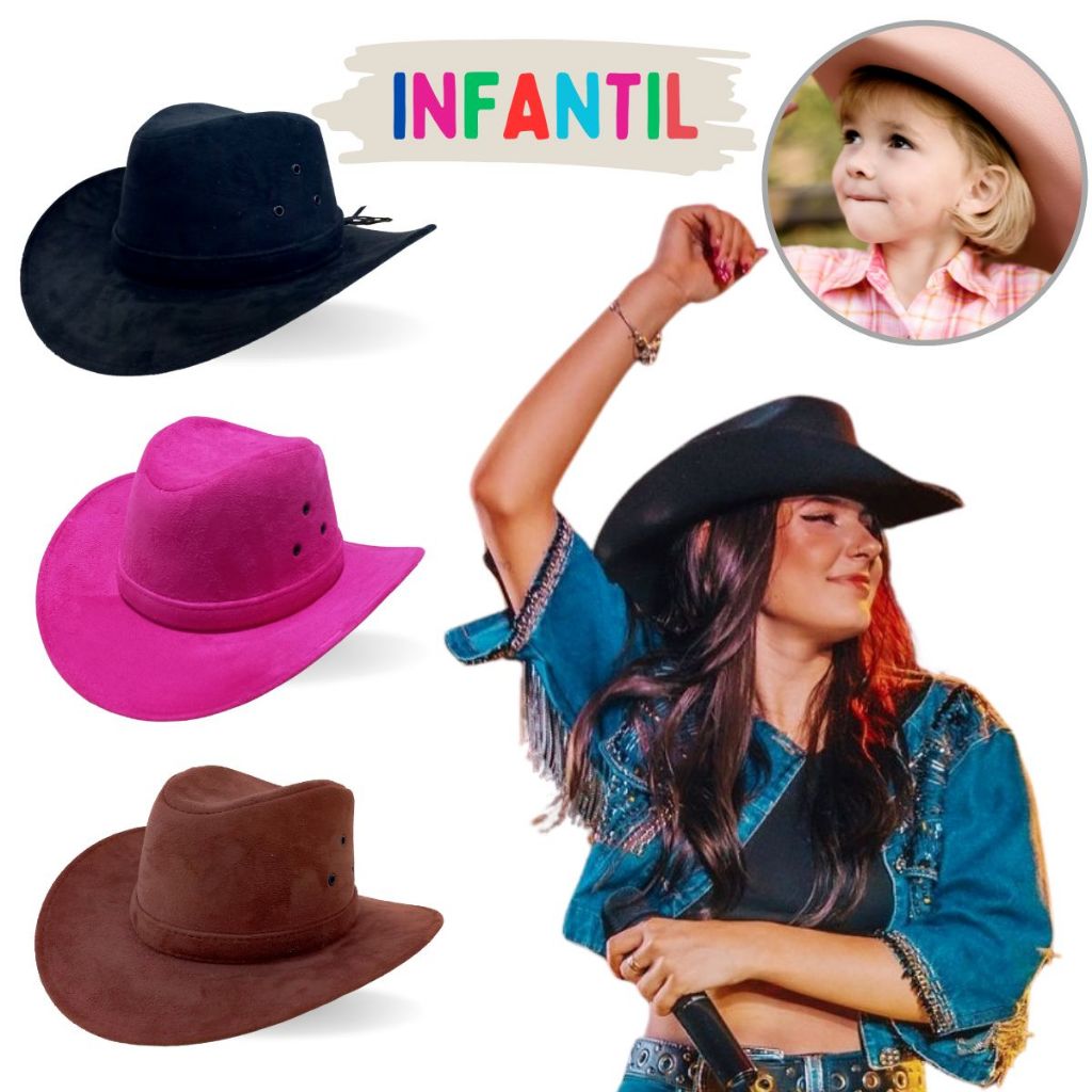 Chapéu Infantil Country Ana Castela Menina Menino Cowboy Festa Peão Boiadeira Barretos Junina Monolo