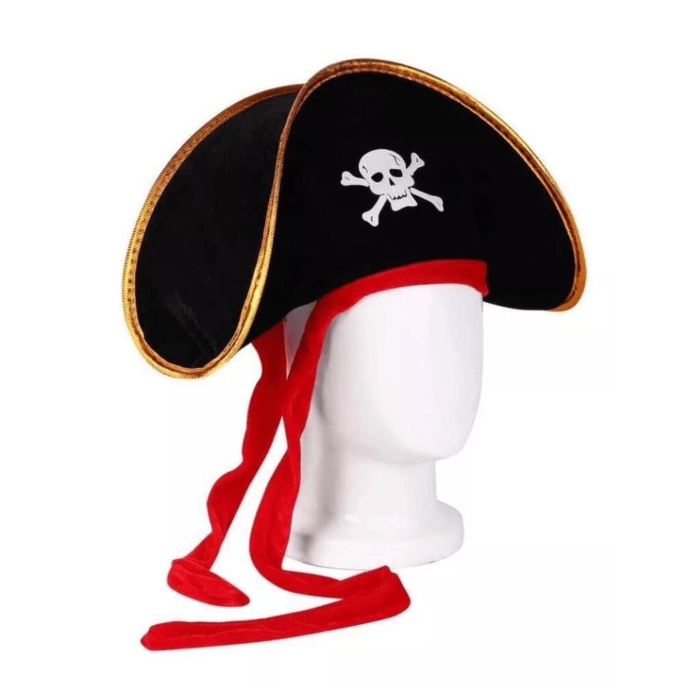 Chapéu Pirata Adulto Preto Com Faixa Vermelha