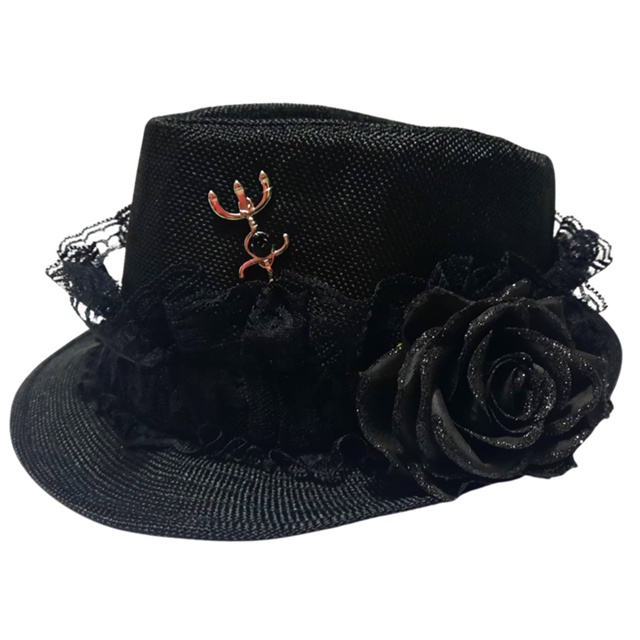 Chapéu Pomba Gira Preto Renda Preta Flor Preta Brilhosa Umbanda Candomble