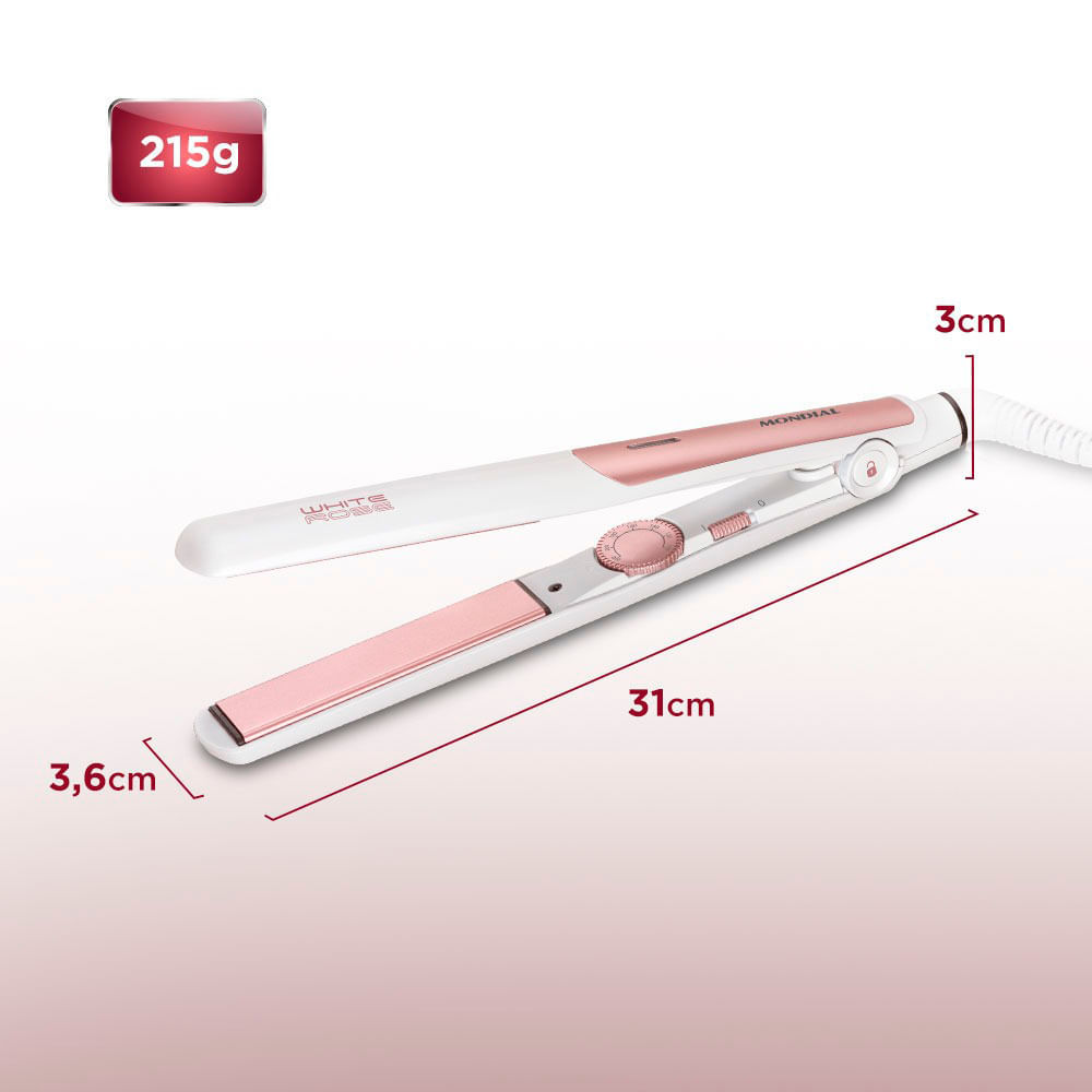 Chapinha Prancha Alisadora Mondial P-50 Cerâmica 200°C Branca e Rosé - Bivolt