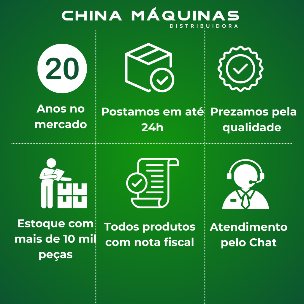Contem: 1- Chave Borboleta para troca disco da Maquina de Corte RC-100 Todos os nossos produtos são conferidos antes de serem postados. Postamos seu produto em até 24h úteis. Sobre a Empresa: A China Máquinas está no mercado a mais de 20 anos suprindo a necessidade do confeccionista com toda qualidade possível. Milhares de peças, máquinas e acessórios em um só lugar. COMPRA 100% SEGURA Bom e Barato é só na China Máquinas!
