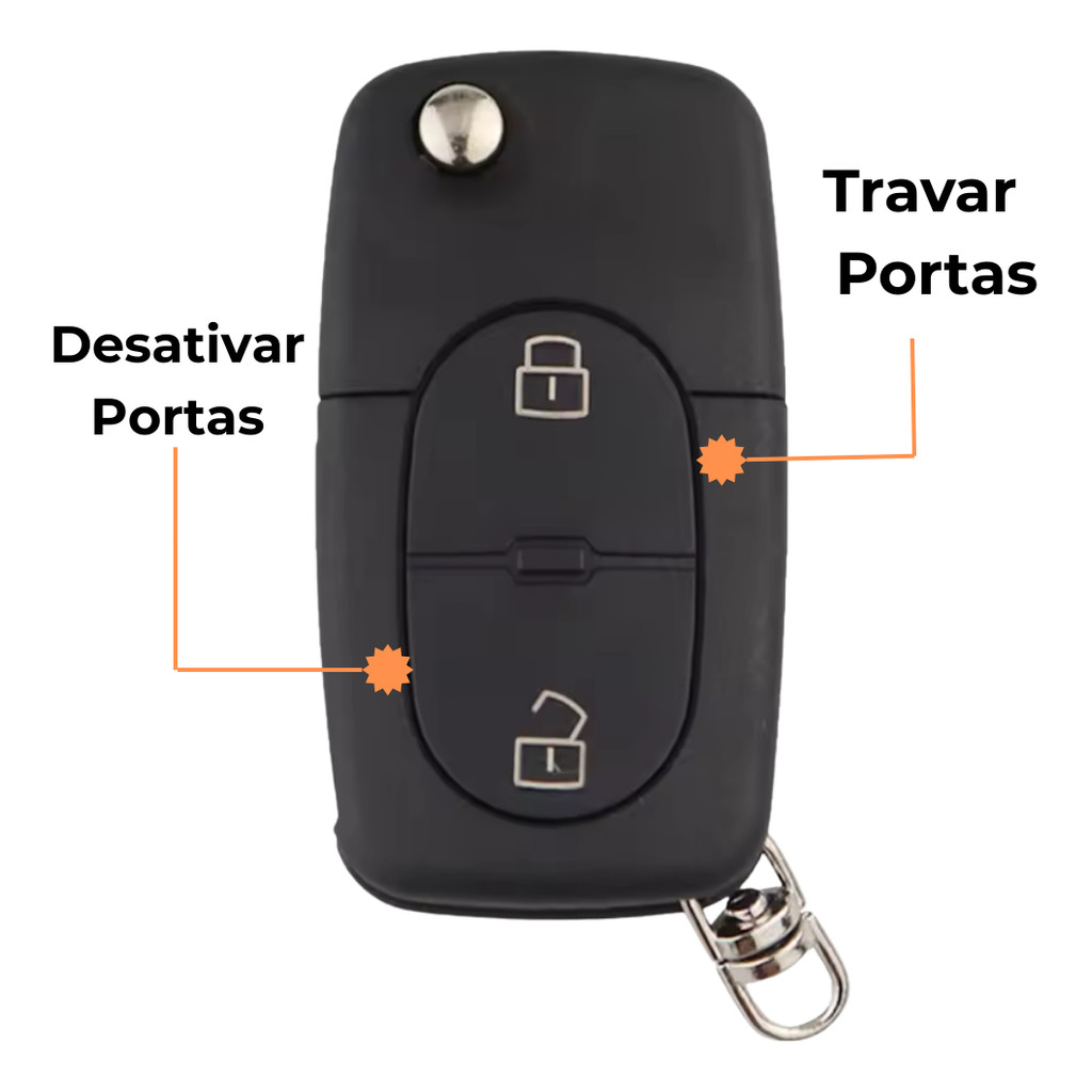 Chave Canivete Audi A3 Até A8 E Audi Tt - 2 Bts - Carcaça. P - Modelo A Com Bateria =============== Compatibilidade: =============== Compatível com os modelos: A1, A2, A3, A4, A6, A8, TT e outros veículos Audi com o mesmo modelo de chave. Modelos com 2 Botões Travar Portas e Destravar Portas Modelo A ====================== Especificações Técnicas: ====================== * Lâmina em metal resistente * Carcaça em plástico de alta durabilidade * Compartimento para chip/transponder * Compatível com alarme e telecomando * Substituição perfeita para a chave original danificada * Modelos com 2 Botões: Travar Portas e Destravar Portas * Modelo A ======================= Conteúdo da Embalagem: ======================= 01 Carcaça (frente e verso) 01 Lâmina virgem 01 Emblema 01 Com Bateria Atenção ===================== - Não acompanha circuito do alarme INSTALAÇÃO Recomendamos que a instalação seja feita por um chaveiro profissional. O chaveiro irá transferir o comando, chip e riscar a lâmina nova, deixando a chave pronta para uso. ATENÇÃO Antes de comprar, verifique se a chave deste anúncio é compatível com a sua chave original.