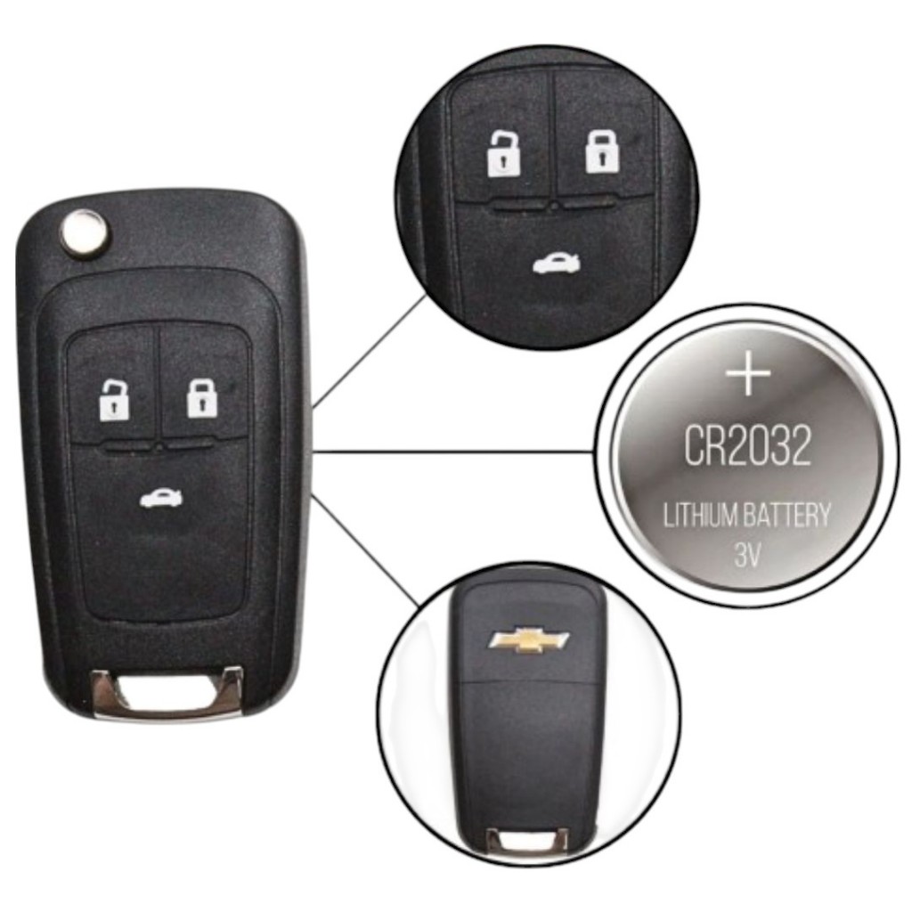 Chave Canivete Carcaça Chevrolet Onix Prisma Cobalt Cruze 3 Botões C/ Bateria