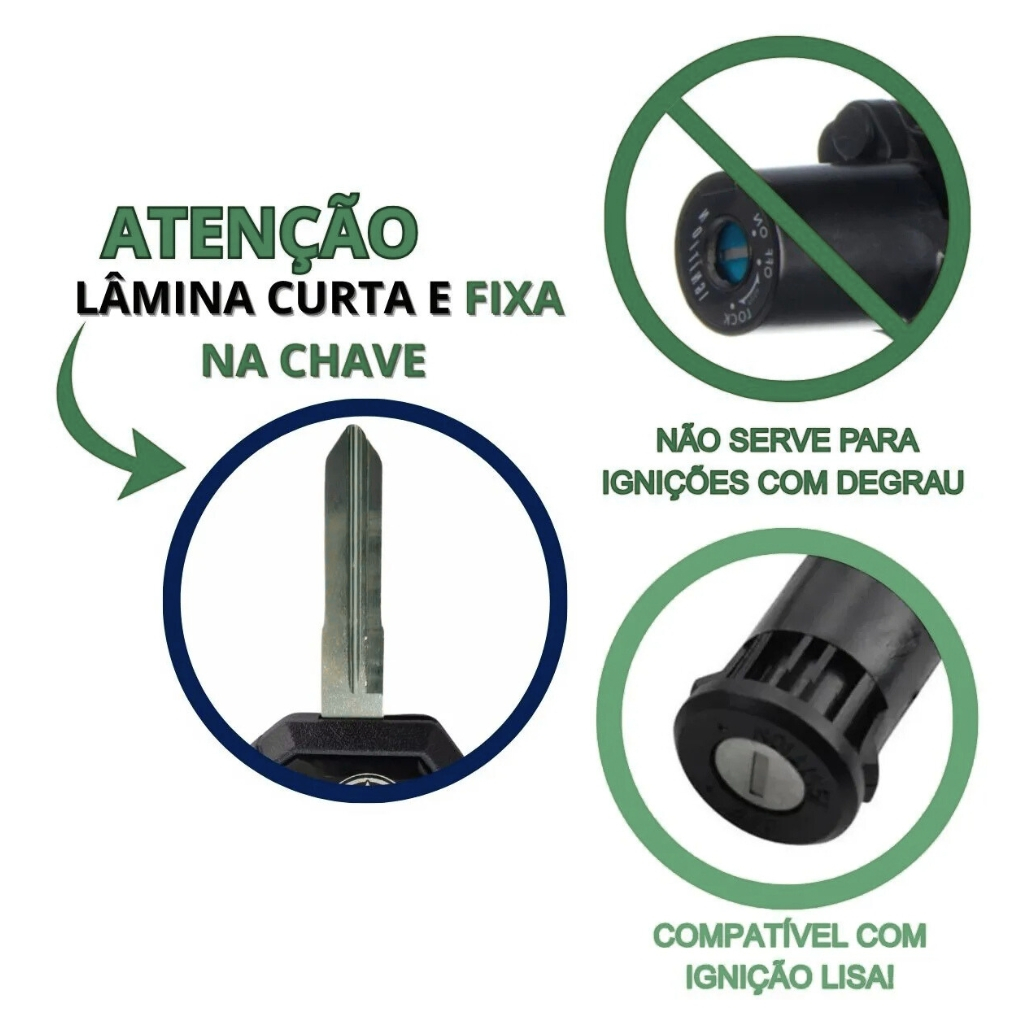 CHAVE CANIVETE PARA MOTOS YAMAHA PRINCIPAIS APLICAÇÕES: - SERVE EM TODAS QUE A Lâmina FOR IGUAL ACOMPANHA: - 1 CHAVE CANIVETE YAMAHA - 1 LOGOTIPO INFORMAÇÕES TÉCNICAS: - CHAVE CANIVETE YAMAHA - LÂMINA YALE Lembre-se de que a instalação adequada é crucial, por isso recomendamos procurar um profissional qualificado para realizar esse processo. MB TECNOLOGIA A MAIOR DISTRIBUIDORA DE PEÇAS PARA CHAVEIROS DO BRASIL. INFORMAÇÕES TÉCNICAS: - CHAVE CANIVETE (DOBRÁVEL) MOTO YAMAHA - LÂMINA YALE VIRGEM Lembre-se de que a instalação adequada é crucial, por isso recomendamos procurar um profissional qualificado para realizar esse processo. MB TECNOLOGIA A MAIOR DISTRIBUIDORA DE PEÇAS PARA CHAVEIROS DO BRASIL. Características Gerais do Produto: • Cor: Preto • Lâmina: Lâmina virgem; Lâmina Yale • Modelo: Yamaha; Yamaha • Aplicação: Canivete Moto Yamaha • Emblema: Yamaha • Função: Substituição / Renovação Acompanha o produto: • 01 - Chave Canivete Moto Yamaha Garantia: • 7 dias de garantia