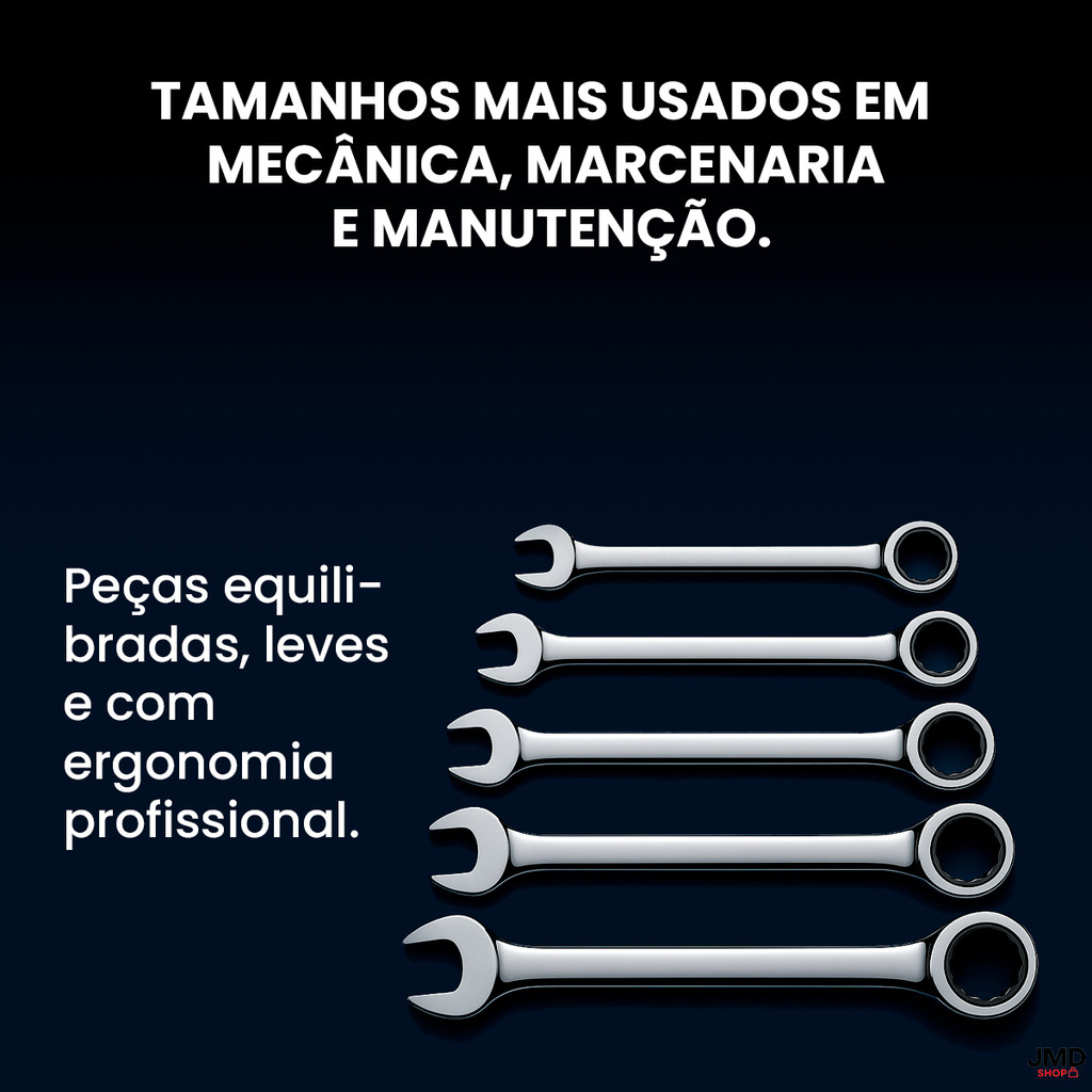 Atenção: Este anúncio refere-se a 1 (uma) unidade da chave. Não é kit. O cliente pode escolher apenas um tamanho disponível no anúncio. A Chave Combinada com Catraca é ideal para quem busca precisão, praticidade e alto desempenho em serviços mecânicos, automotivos, industriais ou reparos domésticos. Fabricada em aço de alta resistência, com acabamento cromado polido, ela oferece durabilidade superior, excelente resposta ao torque e encaixe firme, sem folgas. Cada unidade possui duas funções essenciais: Boca fixa: perfeita para apertos tradicionais. Anel com catraca reversível: permite apertar e soltar parafusos com muito mais rapidez, sem precisar reposicionar a ferramenta a cada movimento. Compre agora sua unidade e escolha o tamanho ideal para completar o seu conjunto de ferramentas!