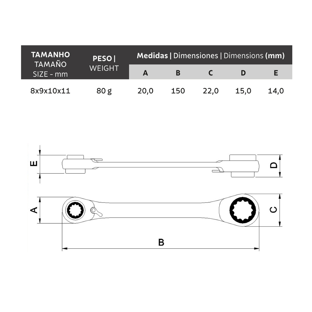 Chave de Catraca 8 a 11mm Tramontina PRO 4 em 1 Multidrive 44637/101