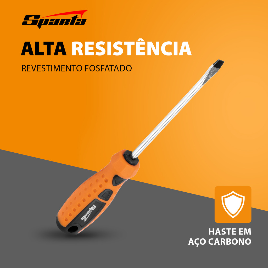 Chave Phillips Sparta 1177255 – SL 1/4 x 5 A Chave Phillips Sparta 1177255, com dimensões SL 1/4 x 5 e cabo ergonômico de dois componentes, é especialmente desenvolvida para atender às demandas dos trabalhos domésticos que envolvem fixadores de rosca com ranhura reta. Esta ferramenta combina funcionalidade, conforto e durabilidade, tornando-se indispensável em qualquer kit de ferramentas para o lar. Principais Vantagens: Durabilidade Superior: O eixo em aço de alta carbono, com dureza de 55 HRC, oferece resistência excepcional, garantindo que a ferramenta suporte o uso contínuo sem perder a forma ou eficiência. Longevidade Estendida: A ponta fosfatada atua como proteção contra desgaste e corrosão, preservando a precisão e prolongando a vida útil da chave, mesmo após múltiplas utilizações. Conforto no Manuseio: O cabo bimaterial, ergonomicamente projetado, adapta-se confortavelmente à mão, proporcionando melhor transmissão de força e reduzindo a fadiga durante o uso prolongado. Armazenamento Prático: A chave acompanha cartão de suspensão, facilitando a organização e o armazenamento seguro da ferramenta, mantendo seu espaço de trabalho sempre ordenado. A Chave Phillips Sparta 1177255 é uma solução confiável e eficiente para uma ampla gama de tarefas domésticas, combinando qualidade, conforto e praticidade para quem valoriza ferramentas duráveis e de alto desempenho.