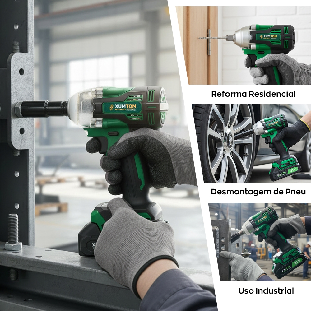 Bem-vindo à loja XUMTOM 🎉🎉🎉 ⚡ Envio rápido a partir de São Paulo - entregue seu pacote rapidamente! ⚡ Muito adequado para desmontar e instalar rodas de veículos médios, DIY doméstico e trabalhadores de oficina ⚡ Público-alvo: Seja para projetos de DIY em casa, manutenção de carros e motocicletas, reformas ou trabalhos em oficina, a chave de impacto é uma ferramenta "essencial". Comprar uma chave de impacto que possa ser usada por longos períodos é, sem dúvida, a ferramenta elétrica mais valiosa para adquirir. ⚡ A opção com melhor relação custo-benefício do mercado ⚡ Produtos de qualidade com preços acessíveis Apresenta-se A uma marca comprometida com A qualidade e necessidades do cliente Uma marca comprometida com A qualidade e necessidades do cliente. O nosso objetivo é oferecer as melhores soluções ao seu dia a dia, com design funcional e inovador. Para facilitar o transporte de produtos pelos clientes para o trabalho, projetamos especialmente uma bolsa da marca XUMTOM para incluir com os produtos. Acompanhamento: Manual de Instruções; 01-Chave de impacto 01-carregador Bivolt; 02-Bateri 21V 01-Caixa de ferramentas 01-Cinta/Alça de transporte 02- Brocas de Aço Rápid Garantia do Vendedor: 3 meses Chave de impacto de força de torque de 1/2" e 450nm de tecla de impacto de força de torque, uma das mais fortes e poderosas da categoria, com variações de velocidade e rotações reversíveis; Ferramenta para trabalhos que exige força, velocidade e segurança, no aperto e desprendimento dos parafusos e porcas mais fortes que exigem força, velocidade e segurança, no aperto e desprendimento dos parafusos e porcas mais fortes. Vantagens: Controle reversível em LED de alta visibilidade e emborrachado, anti-desclinante, equipado com luz LED de alta visibilidade e emborrachado, anti-desclinante, controle reversível; De forma profissional; Use para retirar e colocar rodas de veículo médio de forma profissional; Modelo de uso profissional, forte, robusto e ergonômico; Motor sem escovas. Características do Produto: - O modelo sem pincéis tem maior confiabilidade, maior eficiência (potência maior para reduzir o atrito), ruído reduzido, maior vida útil, eliminação de interferência eletromagnética e eliminação de ionização do computador necessária para conectar um motor de pincel. Folha de Dados de Dados: -Velocidade De rotação: 0-1900 / 0-3600(RPM); Indicador de carga da bateria; Taxa de impacto: 3.000 max.; Velocidade variável; Motor sem escova; Tensão: 21V. Peso: 2,5 kg Garantia do Vendedor: 3 meses